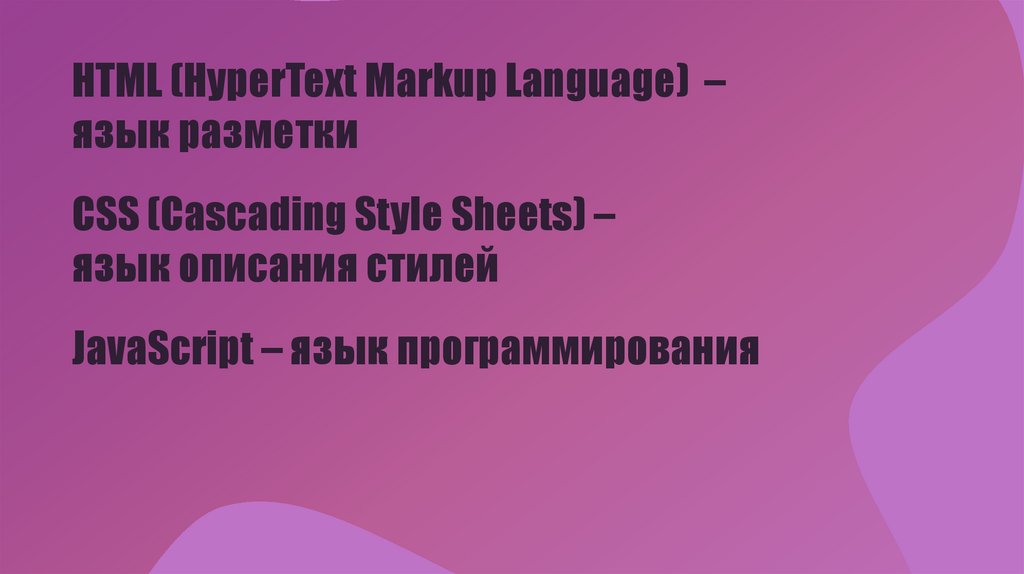 HTML (HyperText Markup Language) –язык разметки