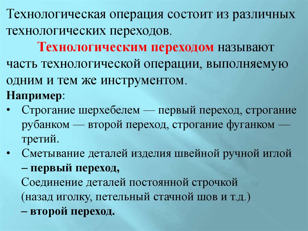 Технологическая операция состоит из различныхтехнологических переходов.