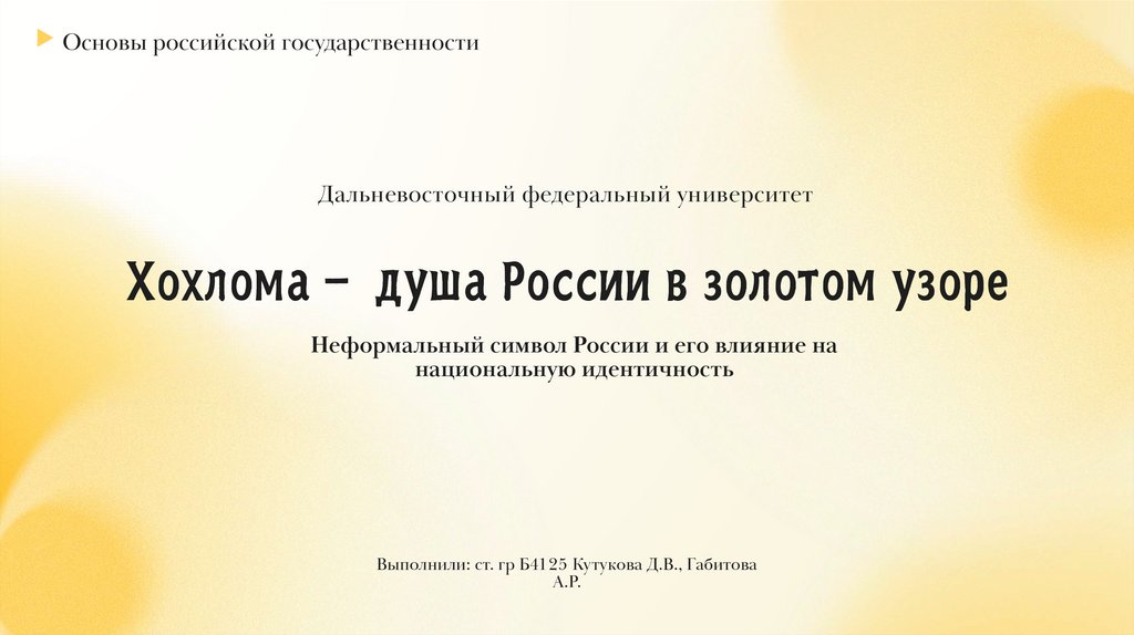 Основы российской государственностиХохлома: история и технология чуда