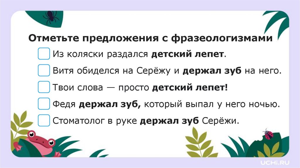 Отметьте предложения с фразеологизмамиИз коляски раздался детский лепет.