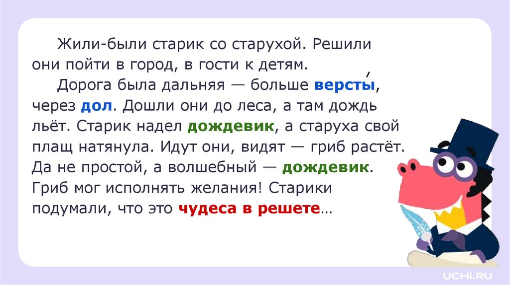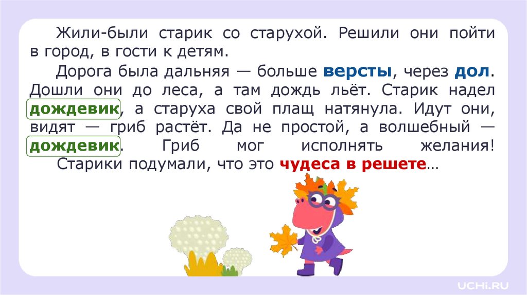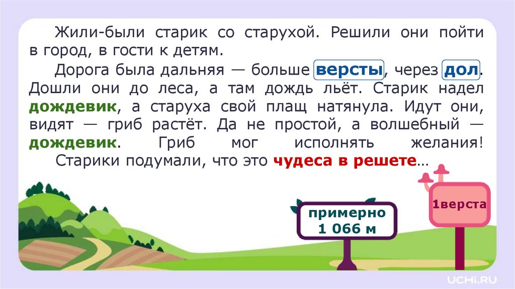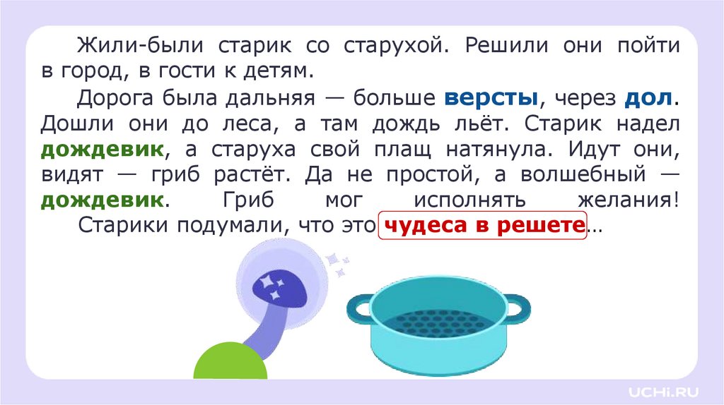 Жили-были старик со старухой. Решилиони пойти в город, в гости к детям.