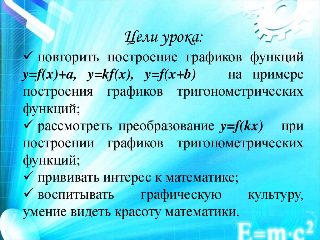 Цели урока:повторить построение графиков функций