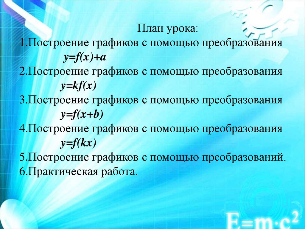 План урока:1.Построение графиков с помощью преобразования