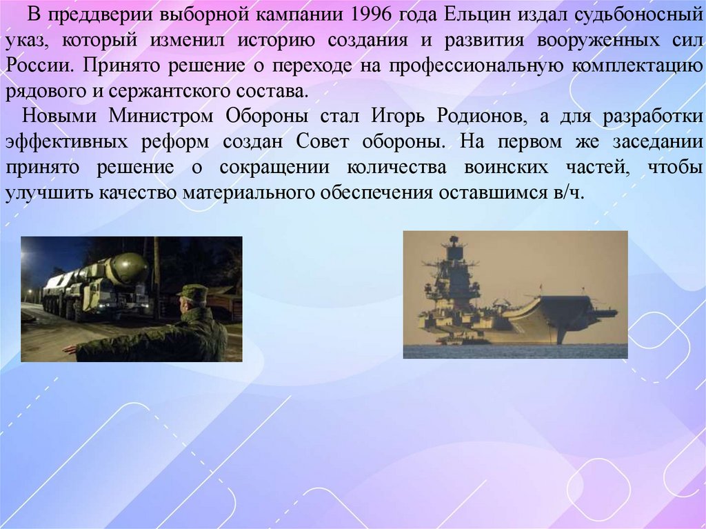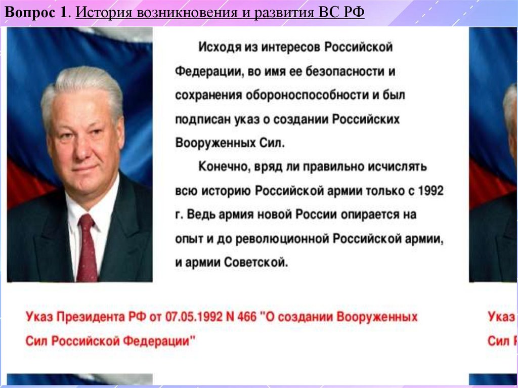 Указ «О создании ВС РФ» был подписан президентом Борисом