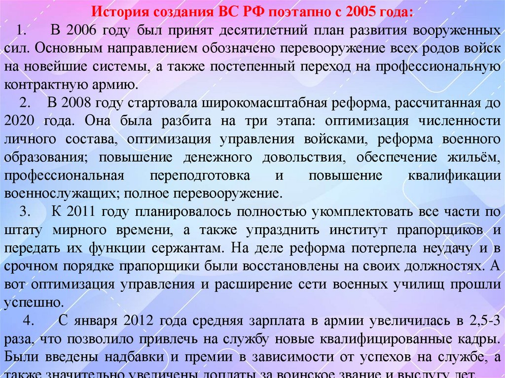 Вопрос 1. История возникновения и развития ВС РФ5.