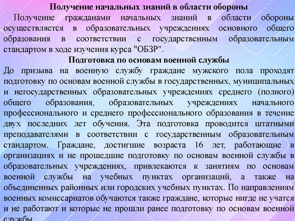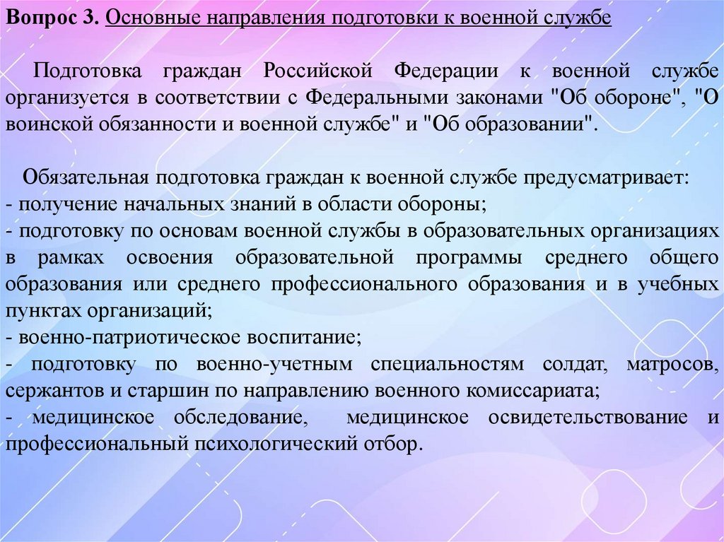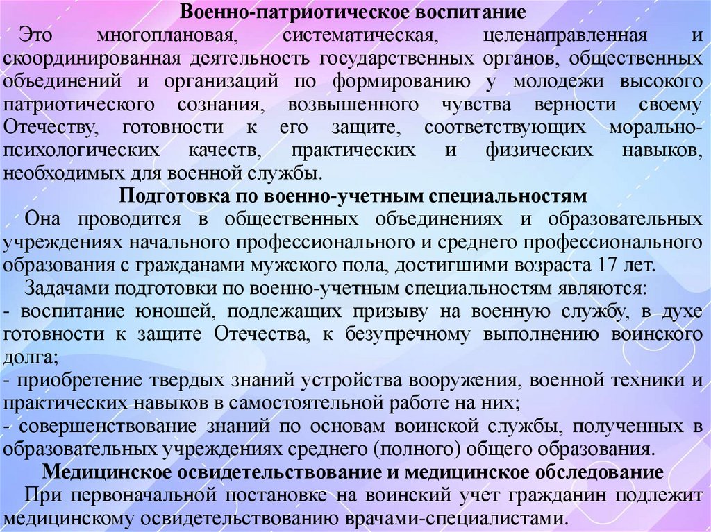 - воспитание юношей, подлежащих призыву на военную службу, в духе