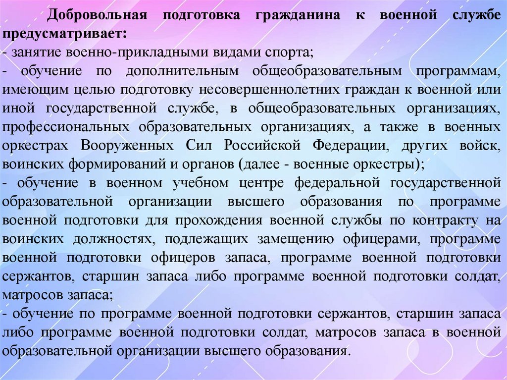 Добровольная подготовка гражданина к военной службепредусматривает: