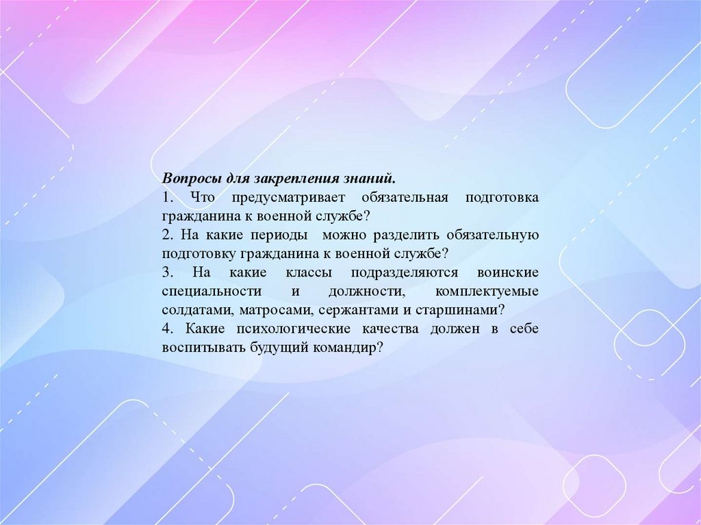 Вопросы для закрепления знаний.1. Что предусматривает обязательная подготовка
