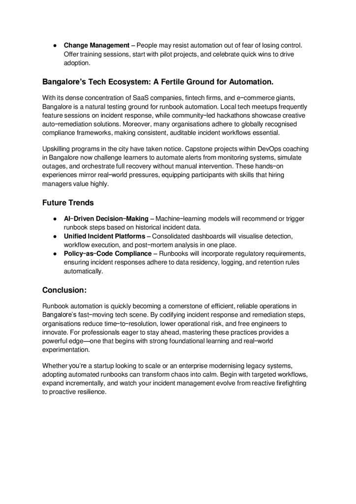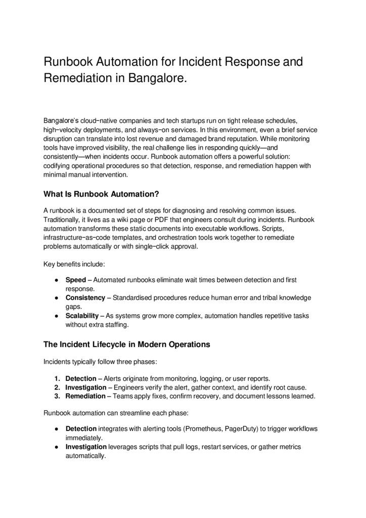Runbook Automation for Incident Response and Remediation in Bangalore
