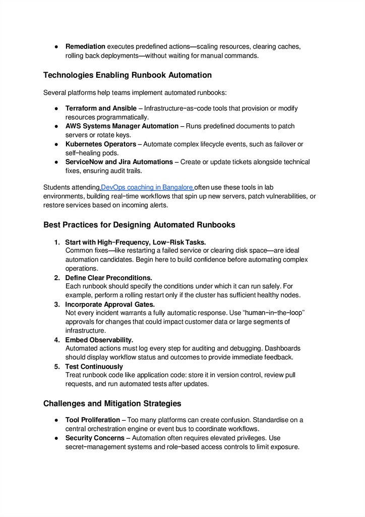 Runbook Automation for Incident Response andRemediation in Bangalore.