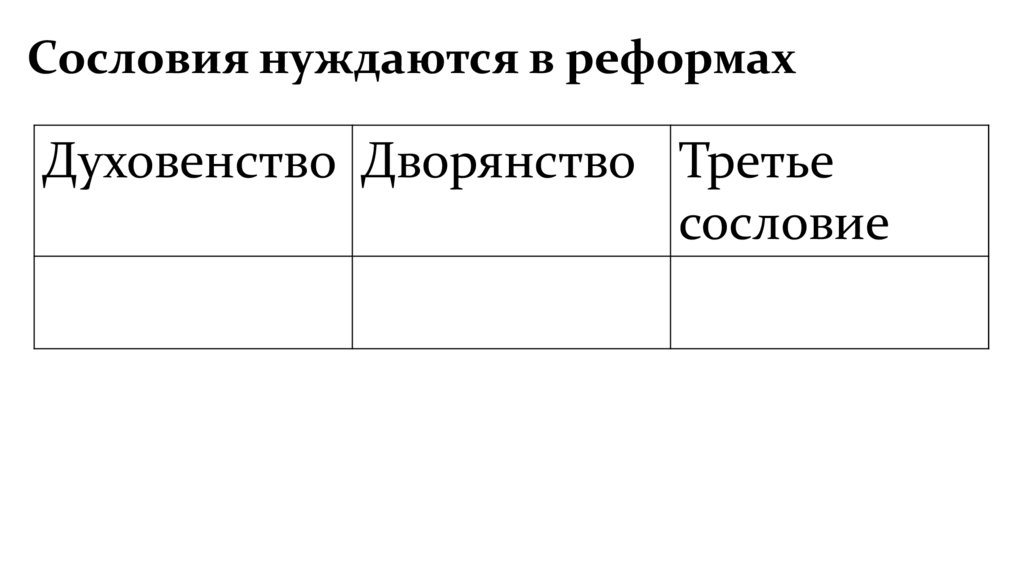 Сословия нуждаются в реформахДуховенство Дворянство Третье