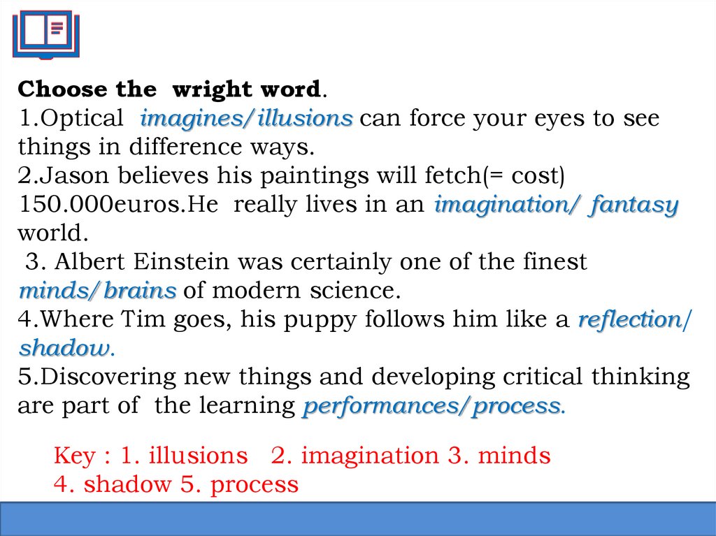 Choose the wright word.1.Optical imagines/illusions can force your eyes to see