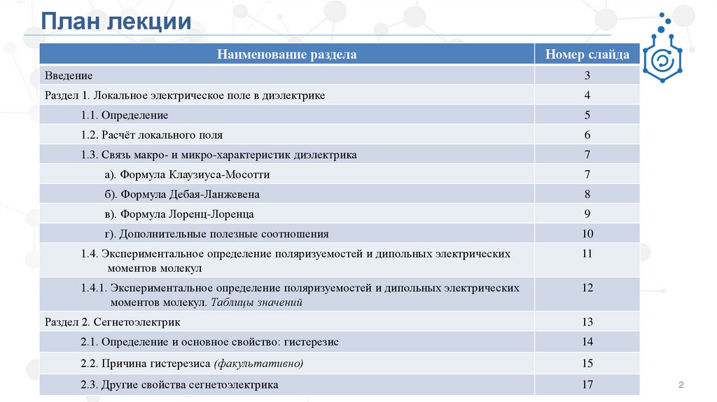План лекцииНаименование раздела