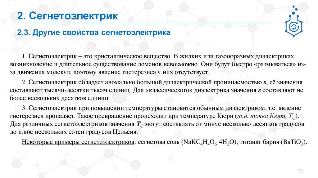 2.3. Другие свойства сегнетоэлектрика