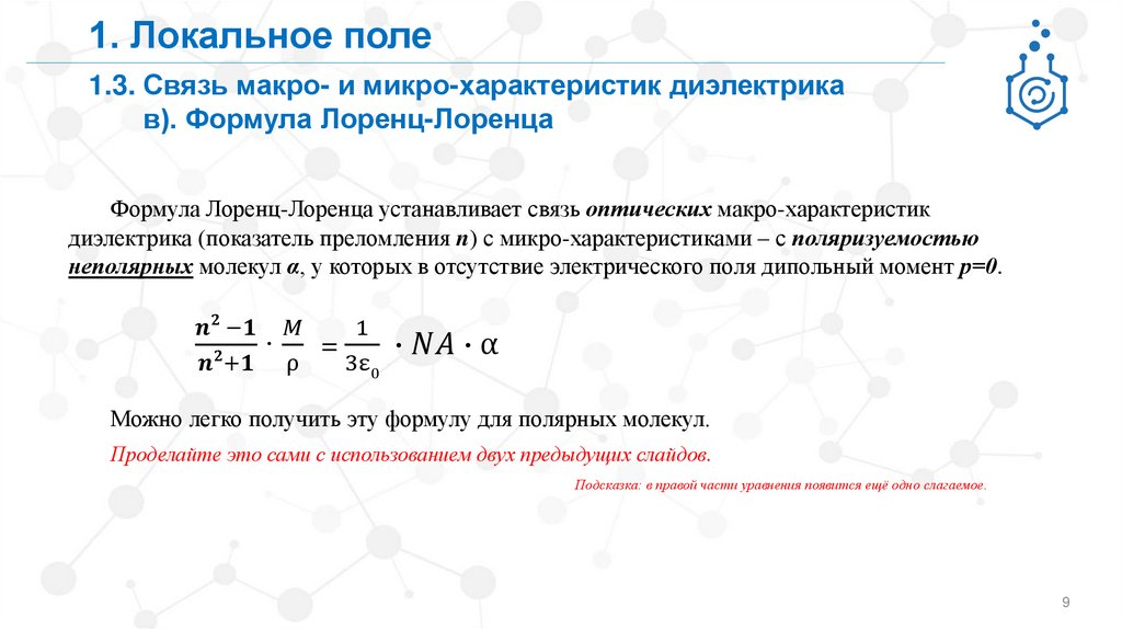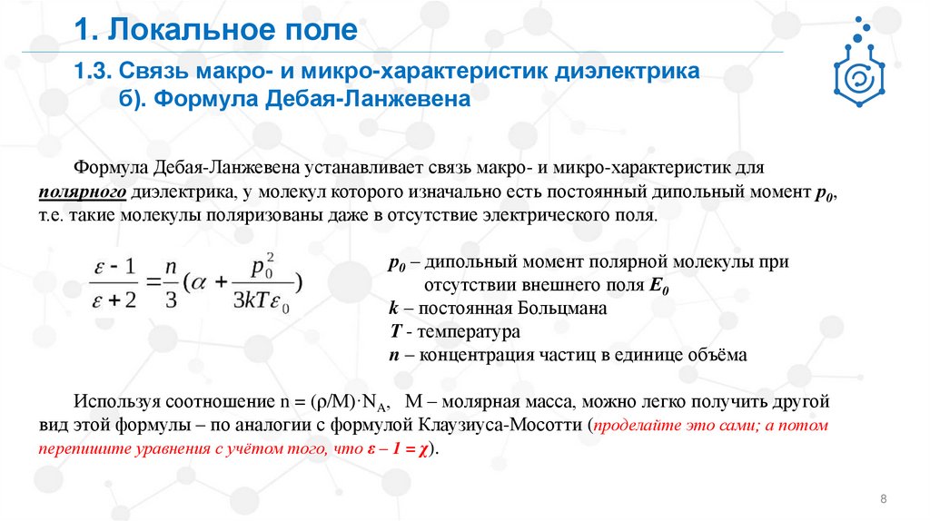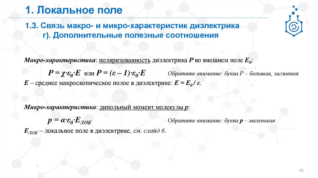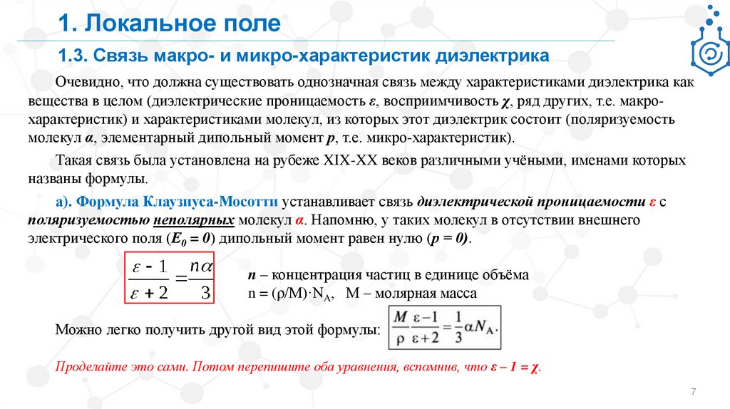 1. Локальное поле1.3. Связь макро- и микро-характеристик диэлектрика