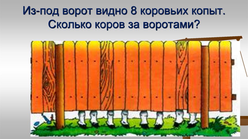 Из-под ворот видно 8 коровьих копыт.Сколько коров за воротами?