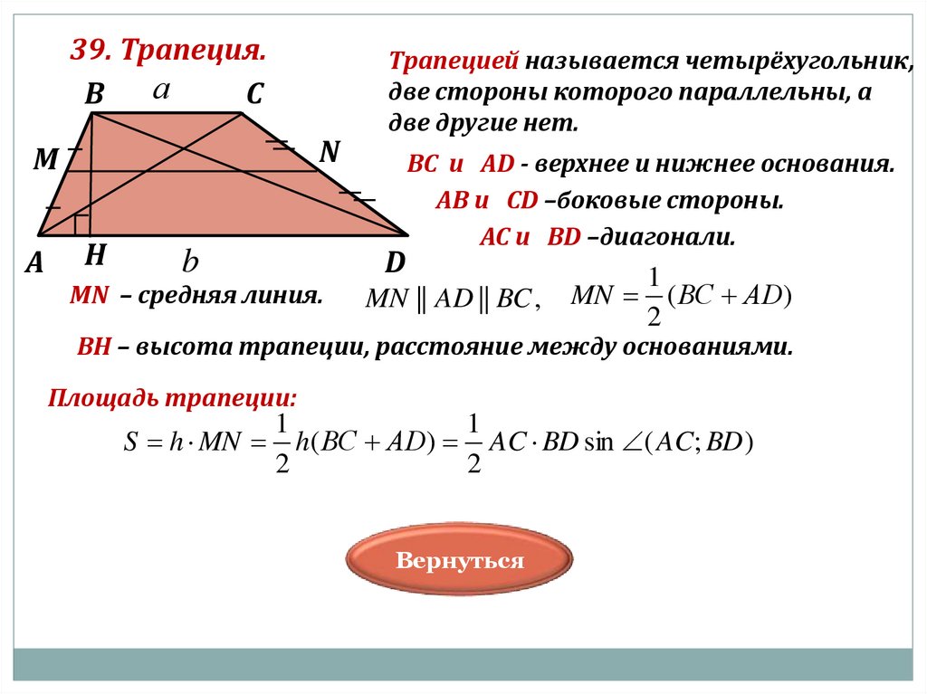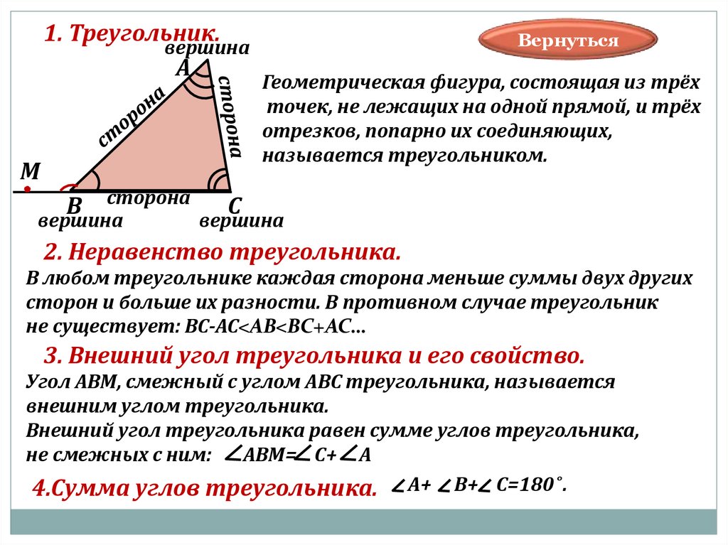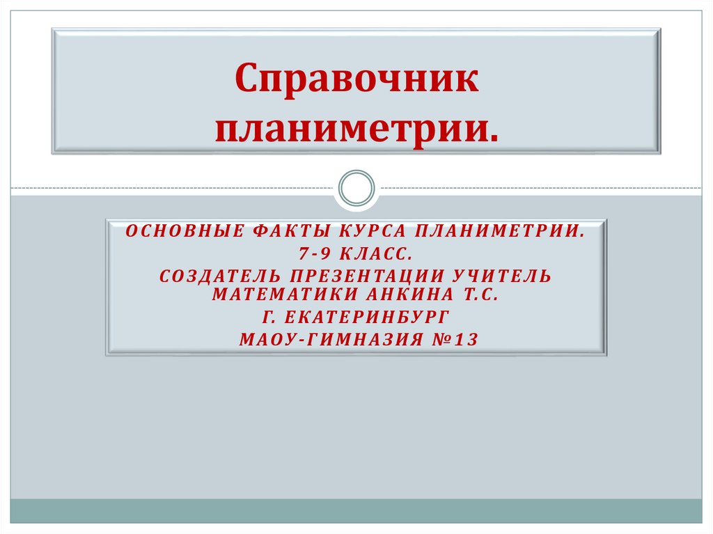 ОСНОВНЫЕ ФАКТЫ КУРСА ПЛАНИМЕТРИИ.7 - 9 К Л АСС .