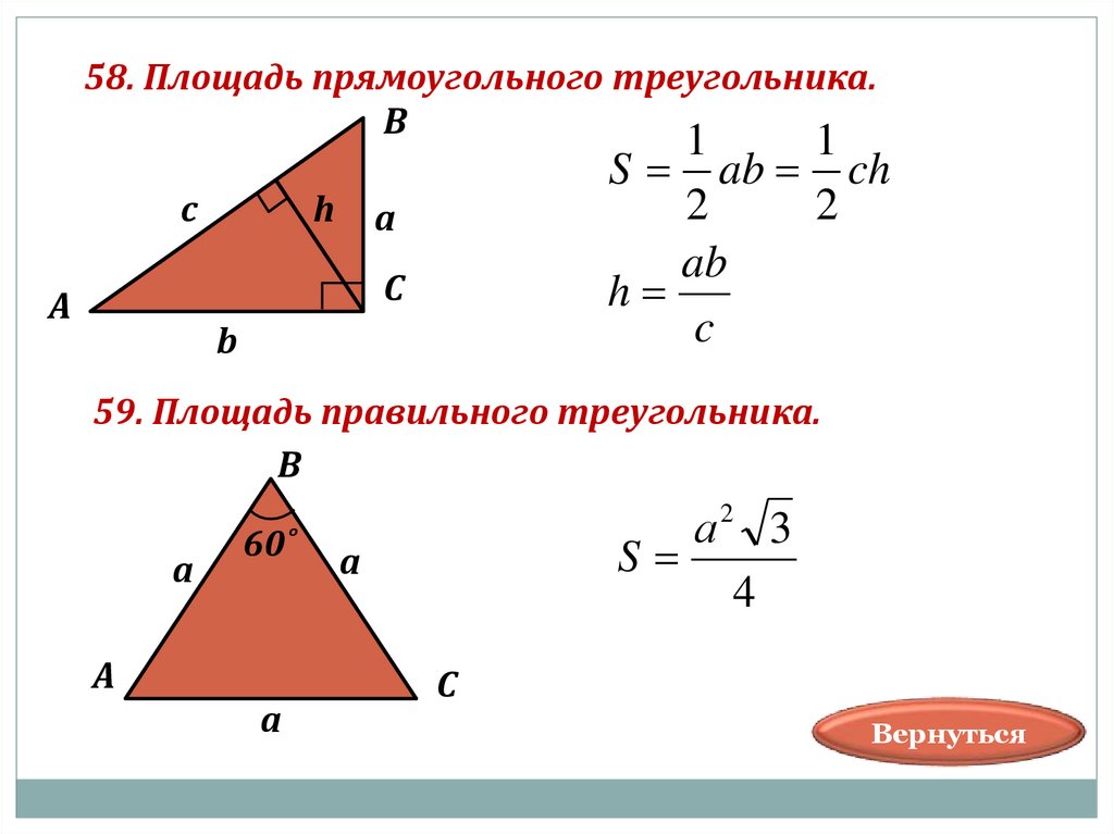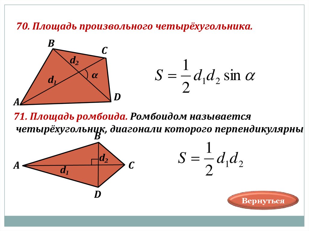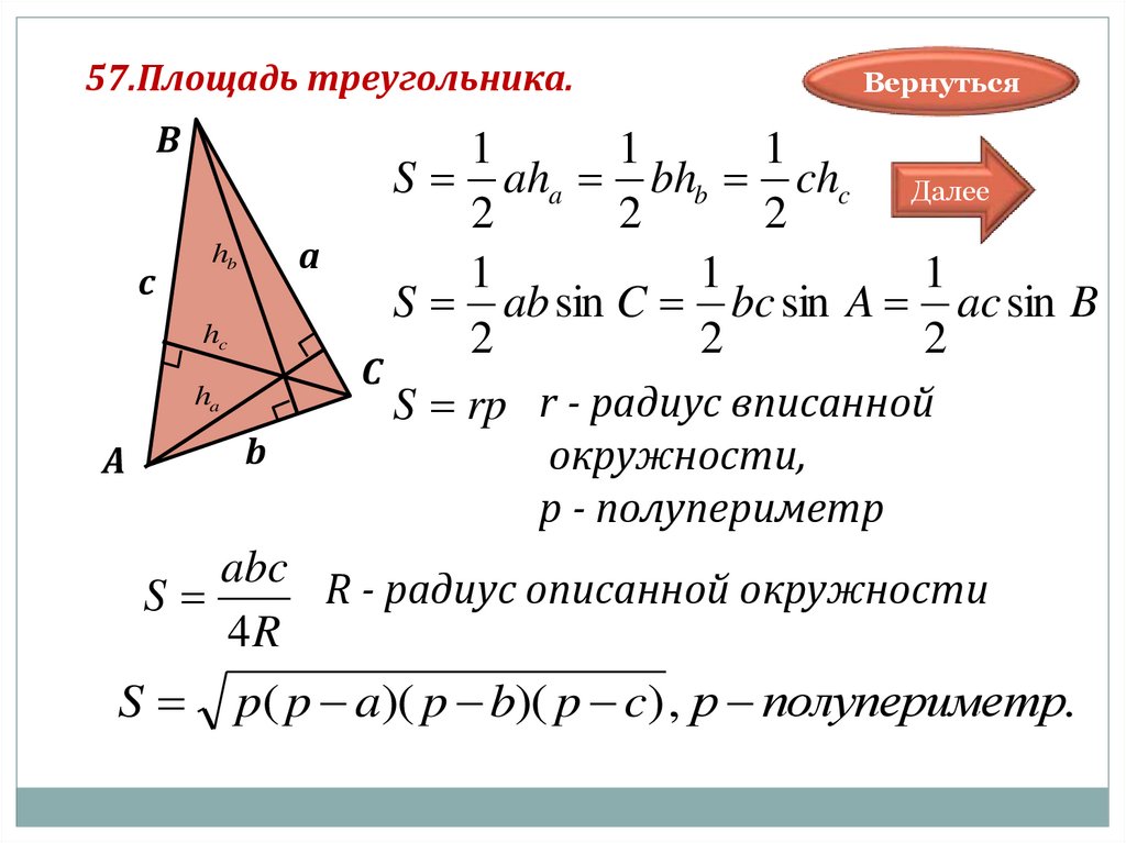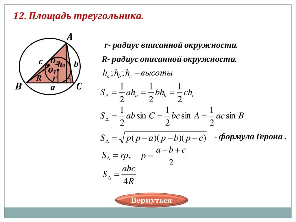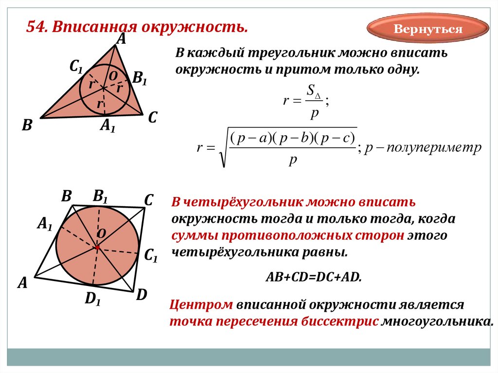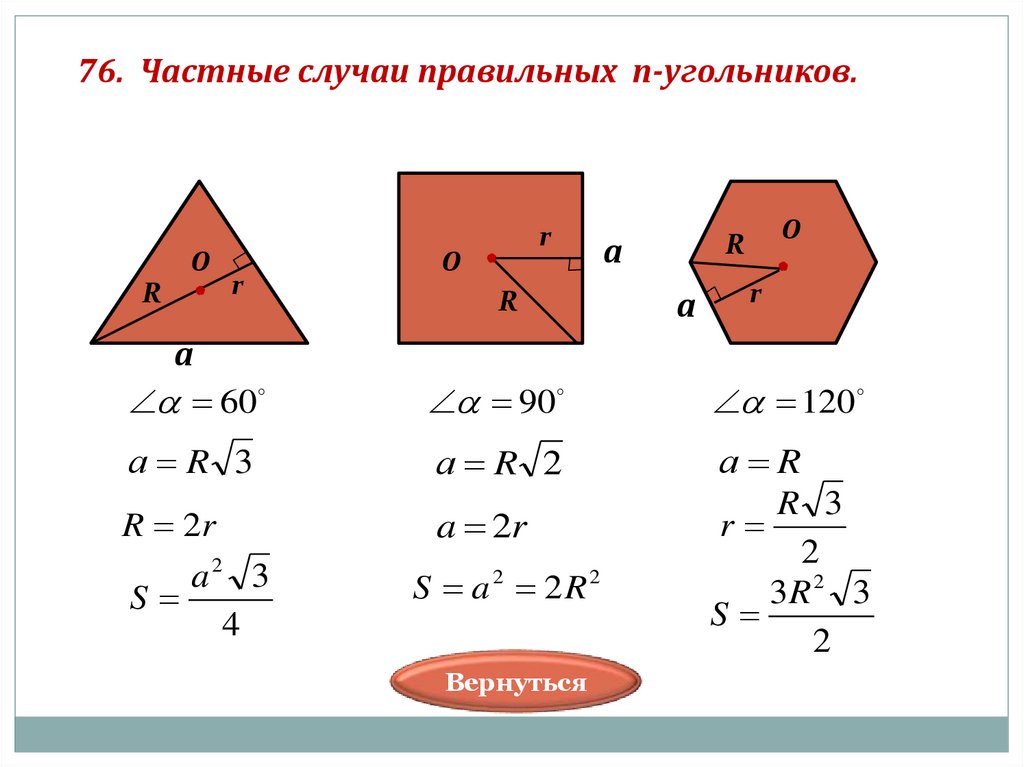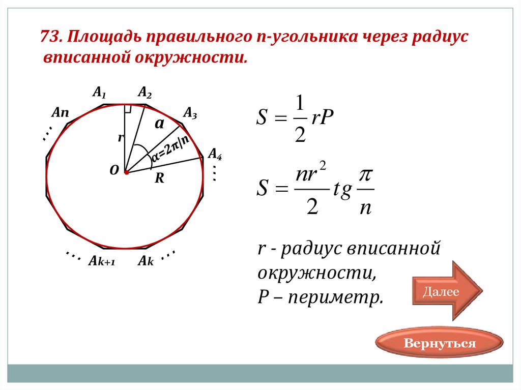 73. Площадь правильного п-угольника через радиусвписанной окружности.