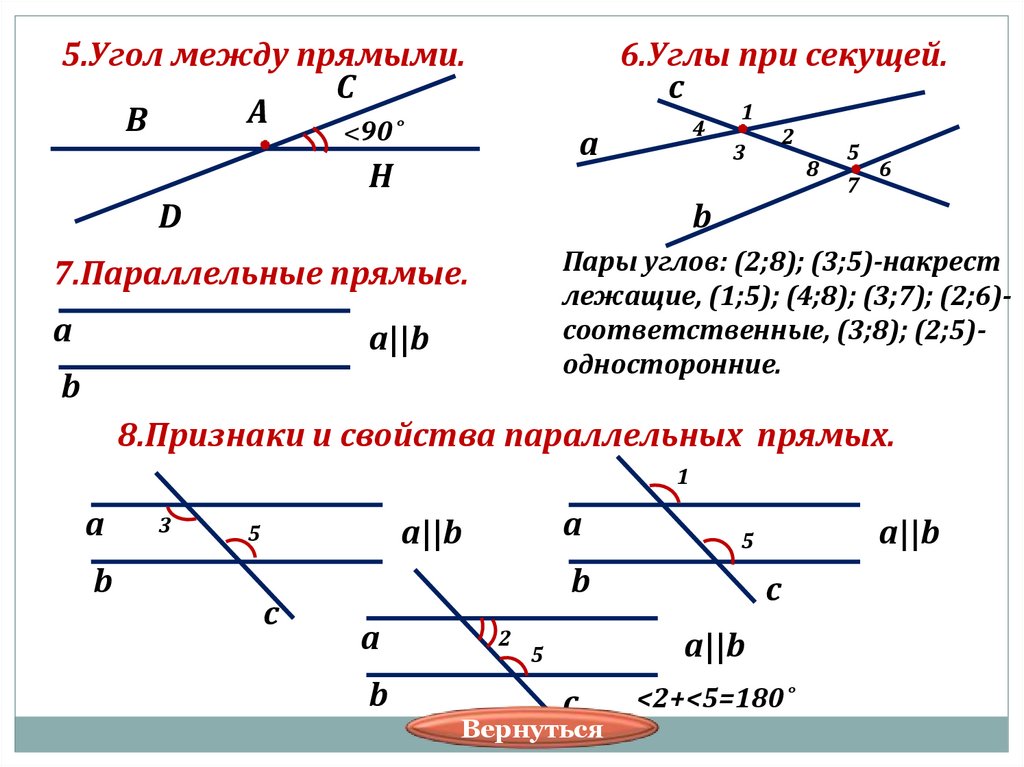лежащие, (1;5); (4;8); (3;7); (2;6)соответственные, (3;8); (2;5)односторонние.