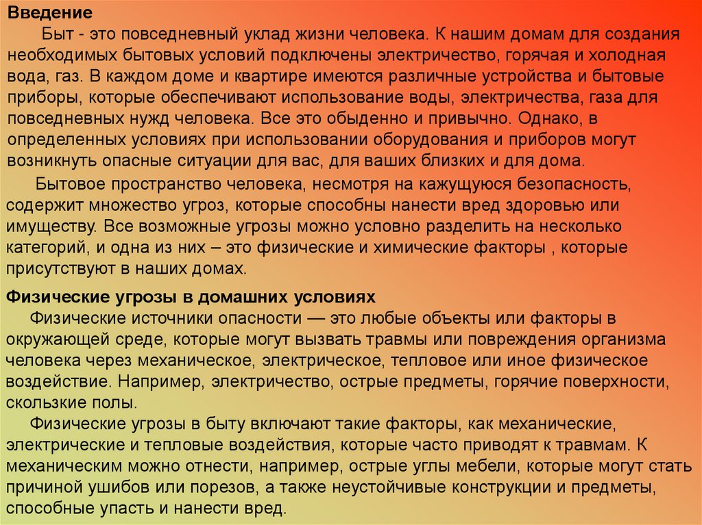 Физические угрозы в быту включают такие факторы, как механические,