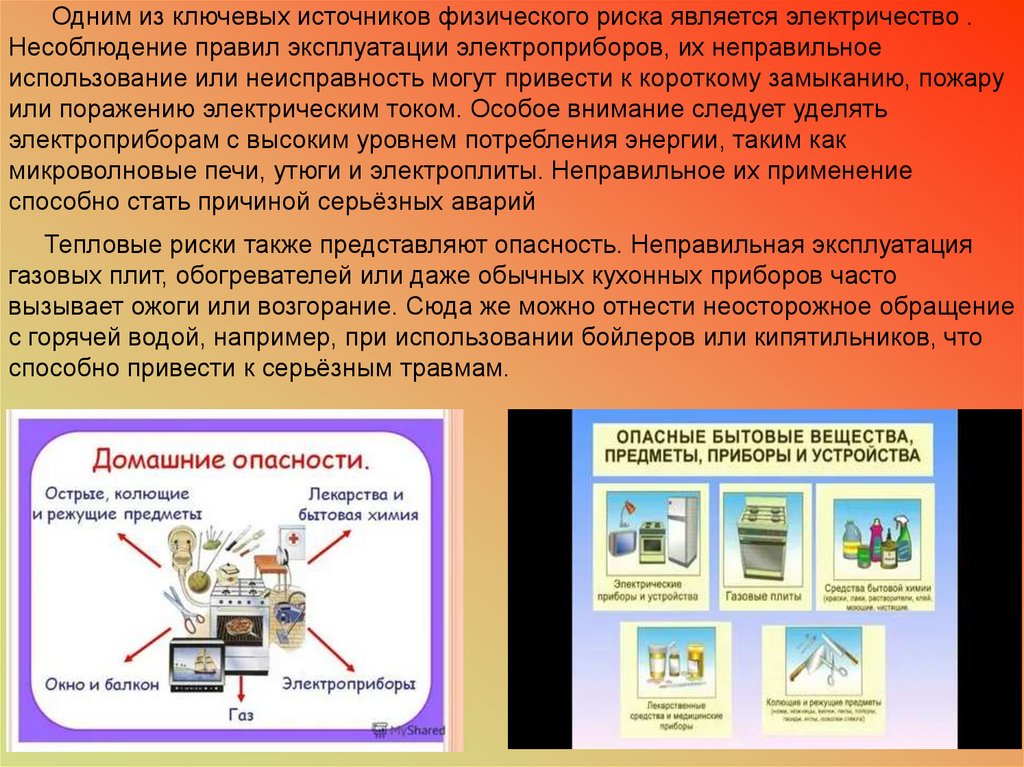Одним из ключевых источников физического риска является электричество .Несоблюдение правил эксплуатации электроприборов, их неправильное