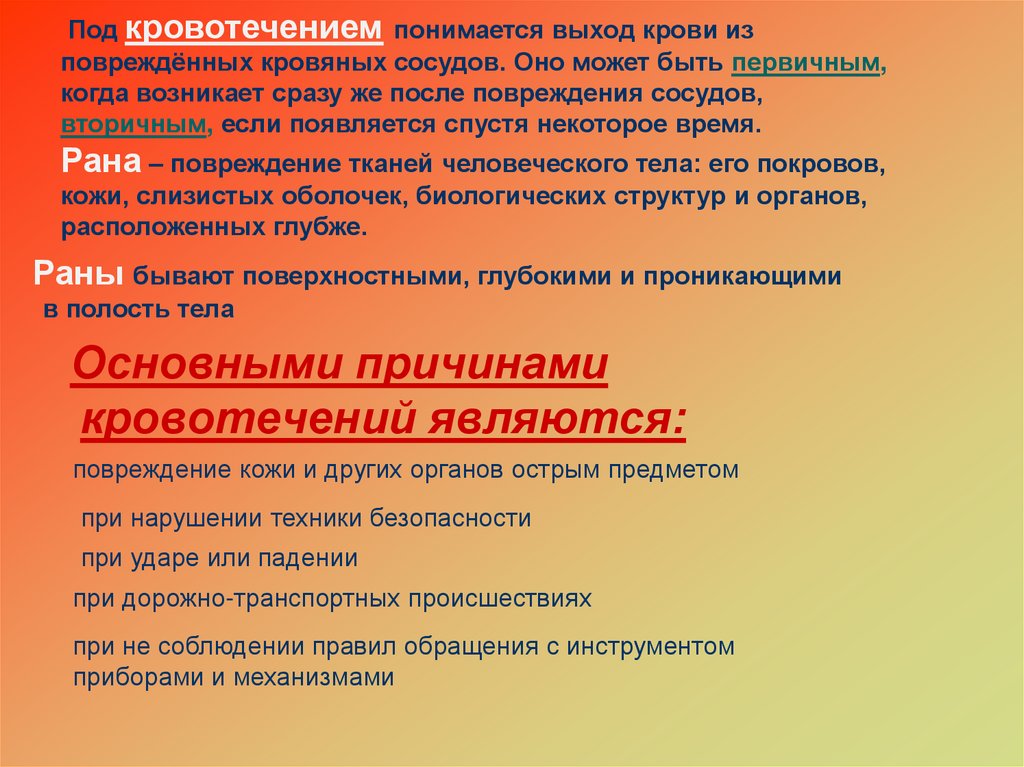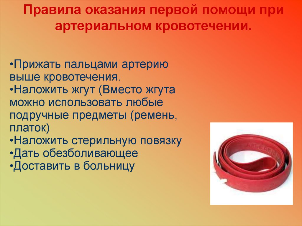 Правила оказания первой помощи приартериальном кровотечении.