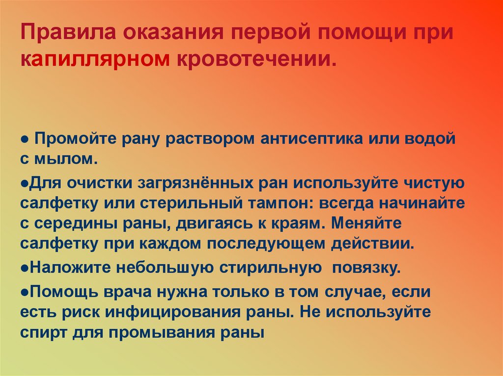 •Прикладывать вату непосредственно к раневой