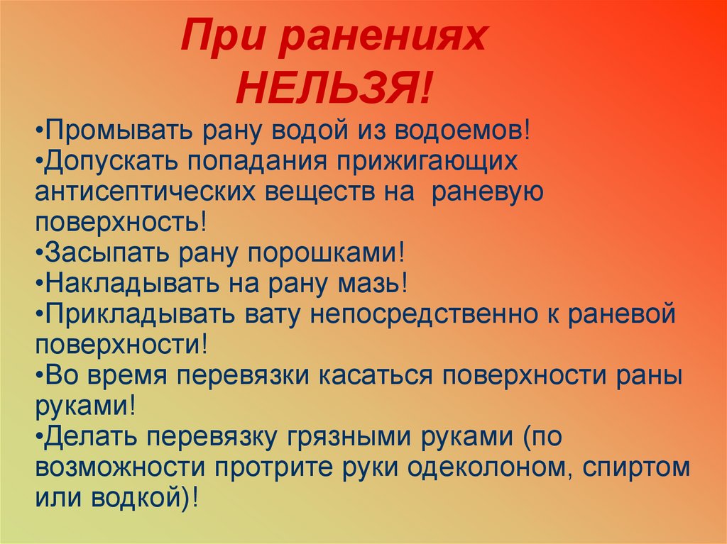 При раненияхНЕЛЬЗЯ!