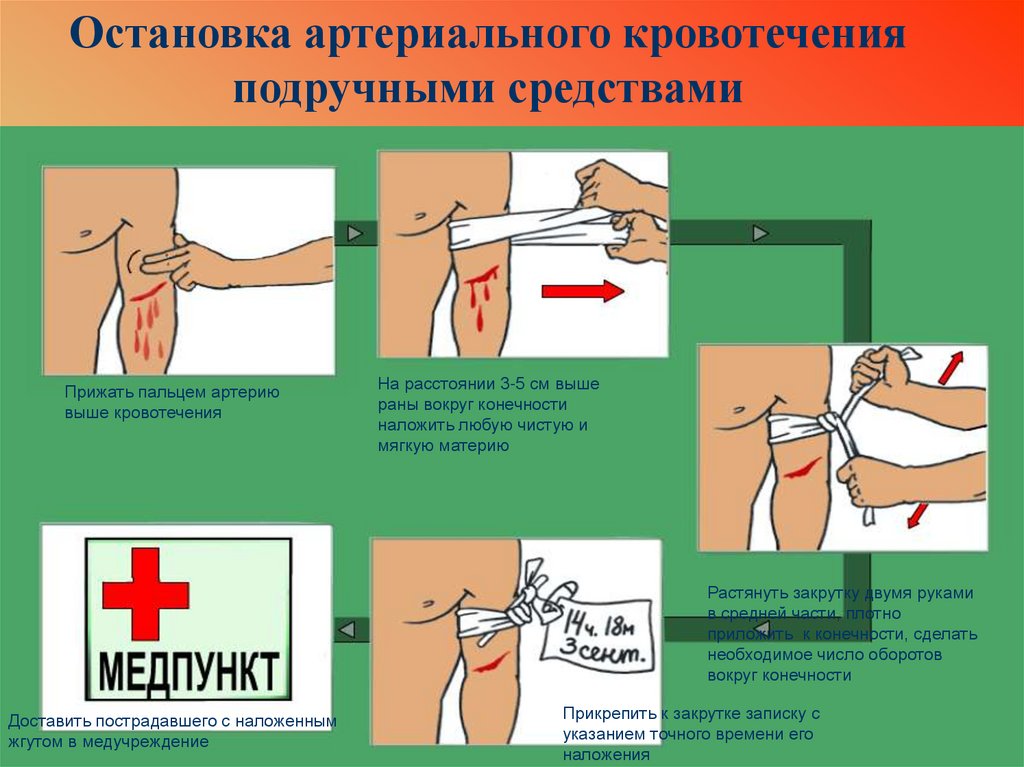 Остановка артериального кровотеченияподручными средствами