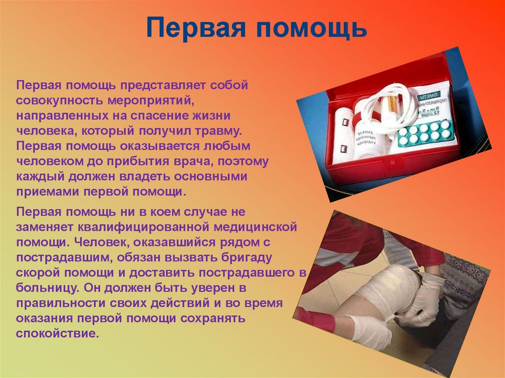 Первая помощьПервая помощь представляет собой