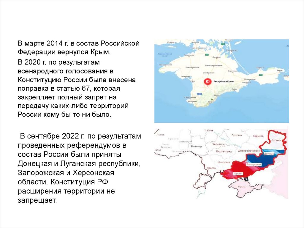 В марте 2014 г. в состав РоссийскойФедерации вернулся Крым.