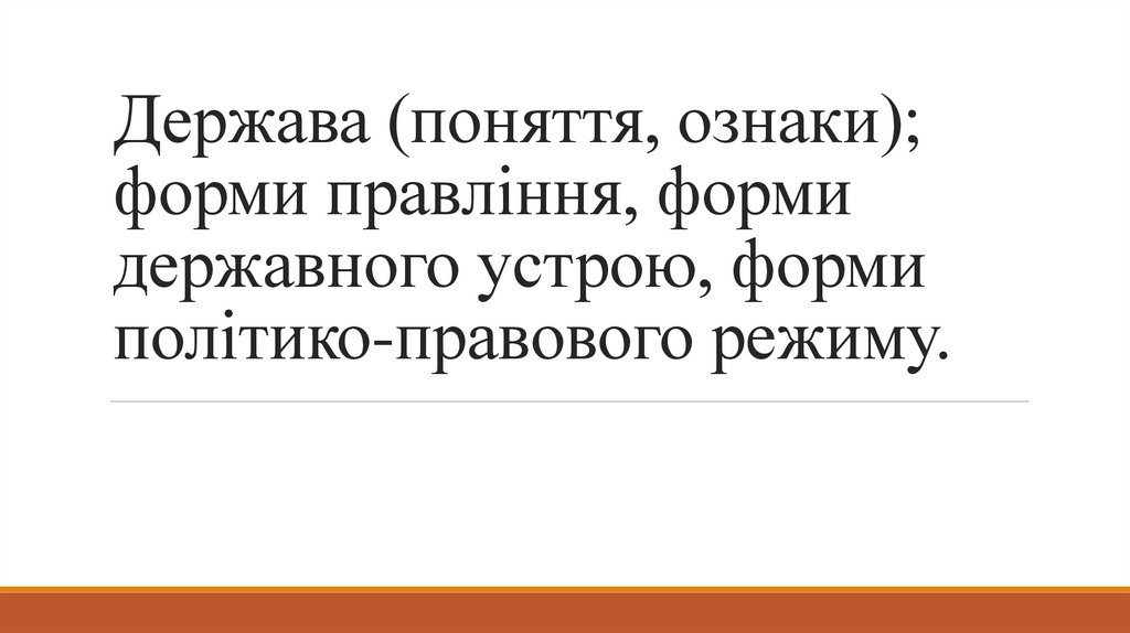 1. Держава (поняття, ознаки); форми правління, форми державного устрою, форми політико-правового режиму.