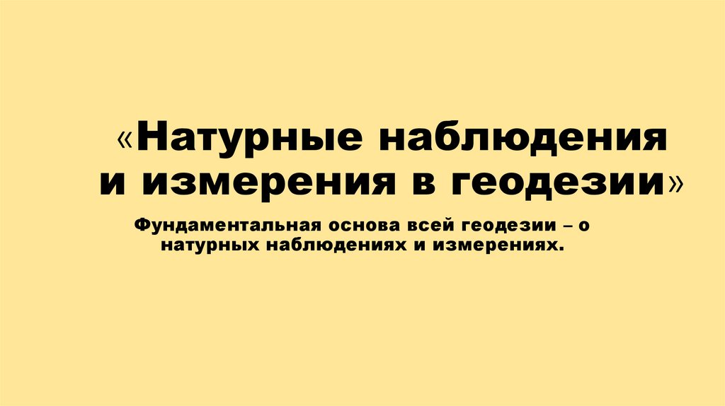 Фундаментальная основа всей геодезии – онатурных наблюдениях и измерениях.