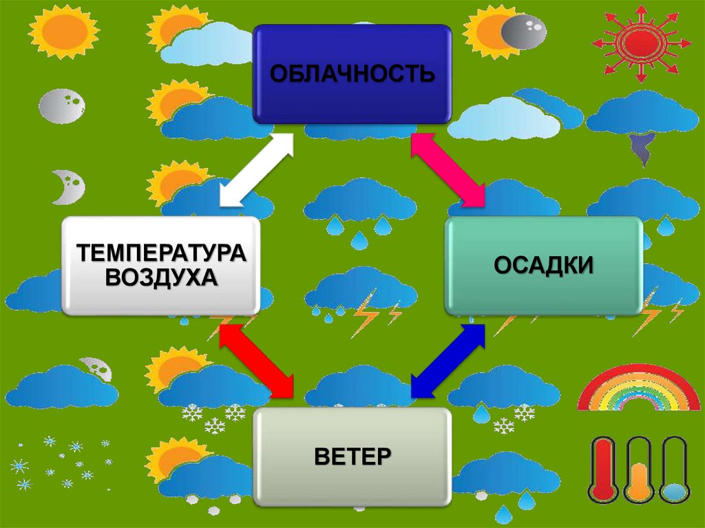Сочетание температуры воздуха,облачности, осадков, ветра — это и есть