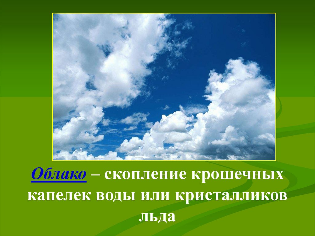 Облако – скопление крошечныхкапелек воды или кристалликов