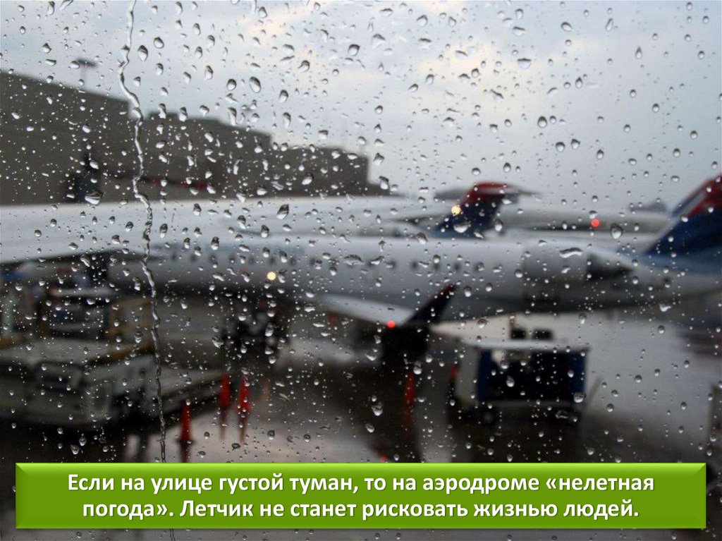 Если на улице густой туман, то на аэродроме «нелетнаяпогода». Летчик не станет рисковать жизнью людей.