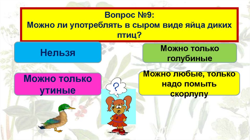 Вопрос №9:Можно ли употреблять в сыром виде яйца диких