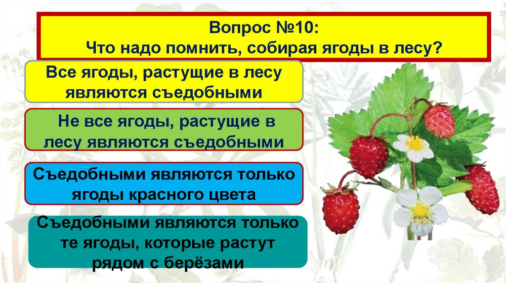 Вопрос №10:Что надо помнить, собирая ягоды в лесу?