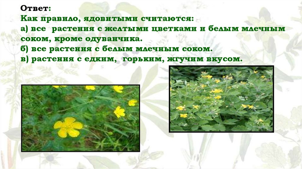 9. Вопрос №3: Назовите несколько признаков ядовитых растений?