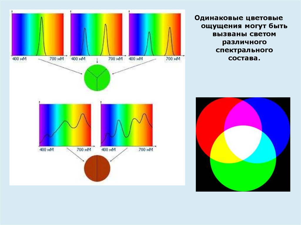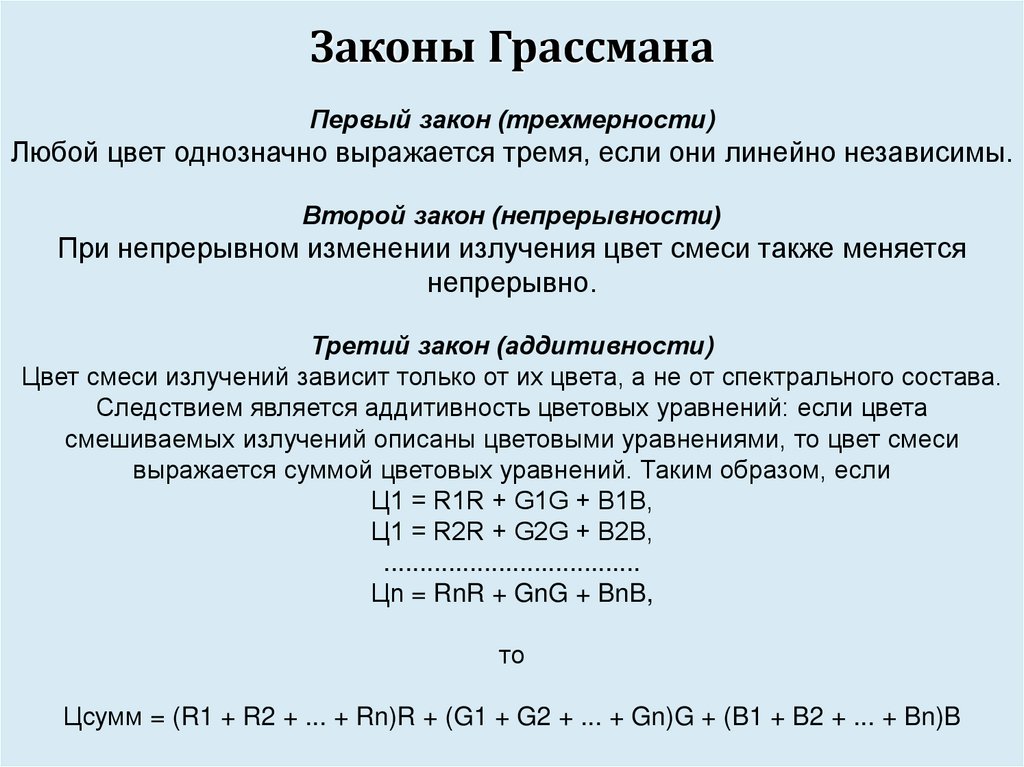 Цвет смеси излучений зависит только от их цвета, а не от спектрального состава.