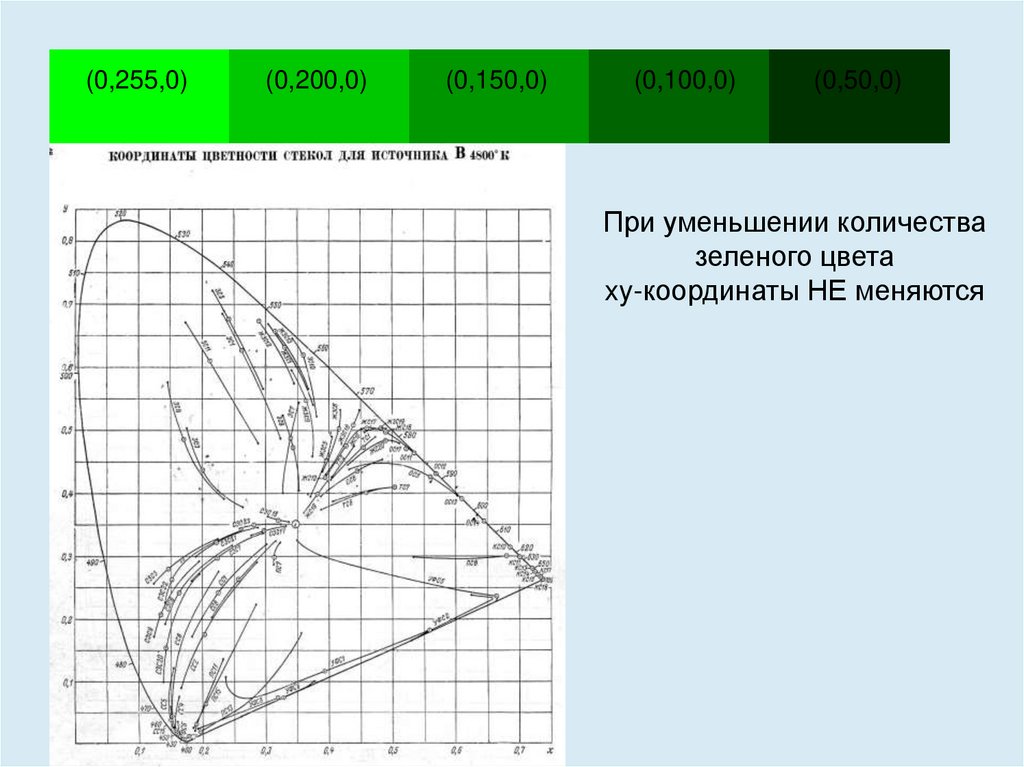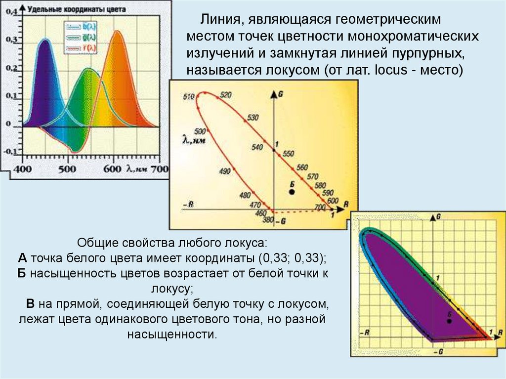 смешиваемых излучений описаны цветовыми уравнениями, то цвет смеси