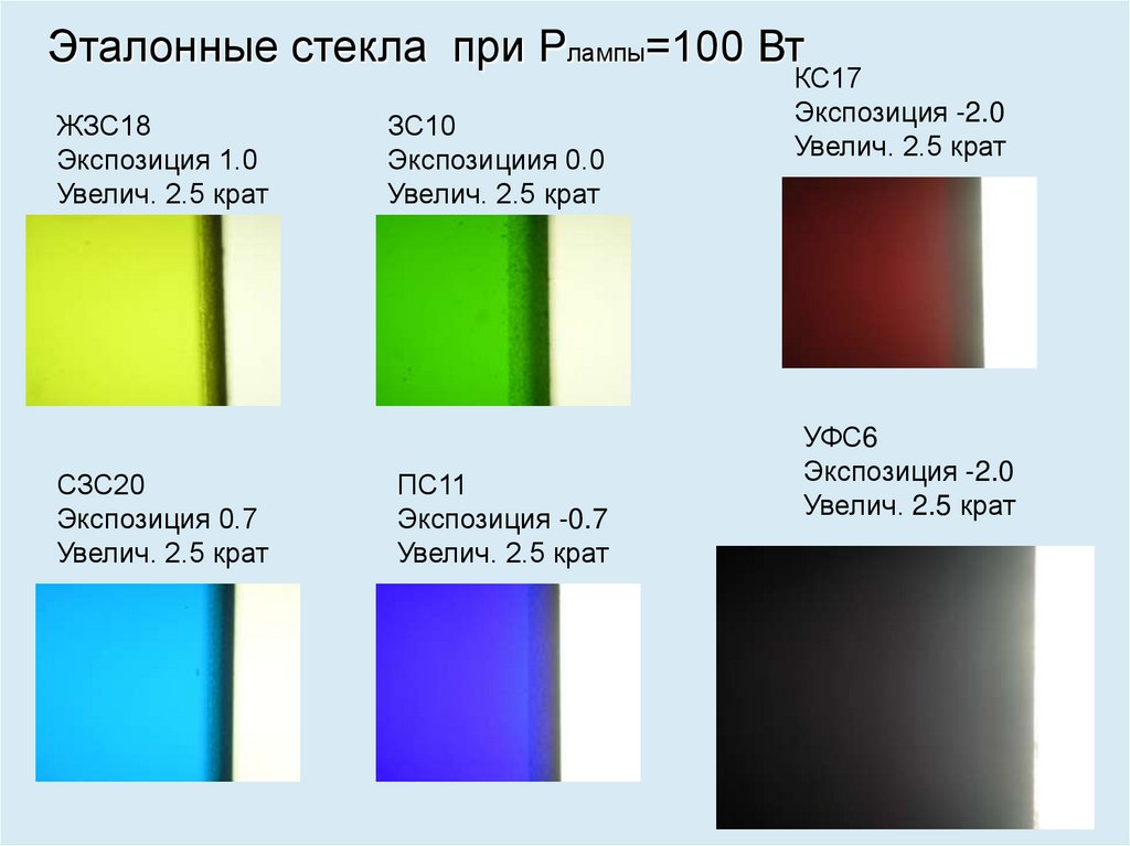 Эталонные стекла при Pлампы=100 ВтЖЗС18