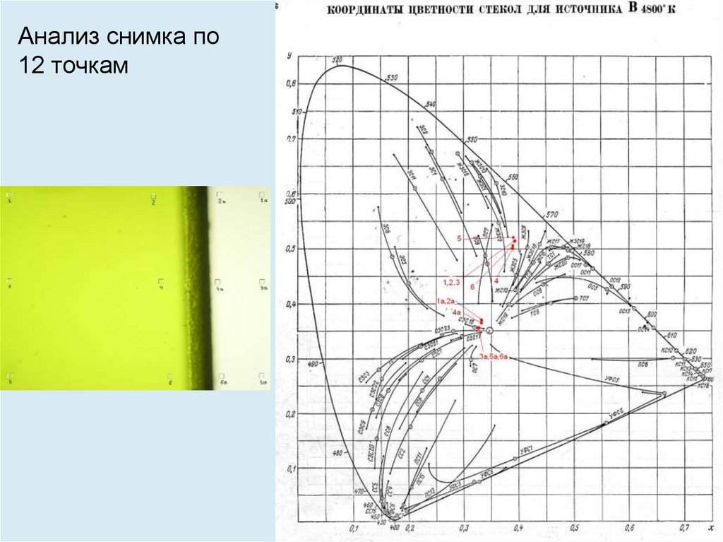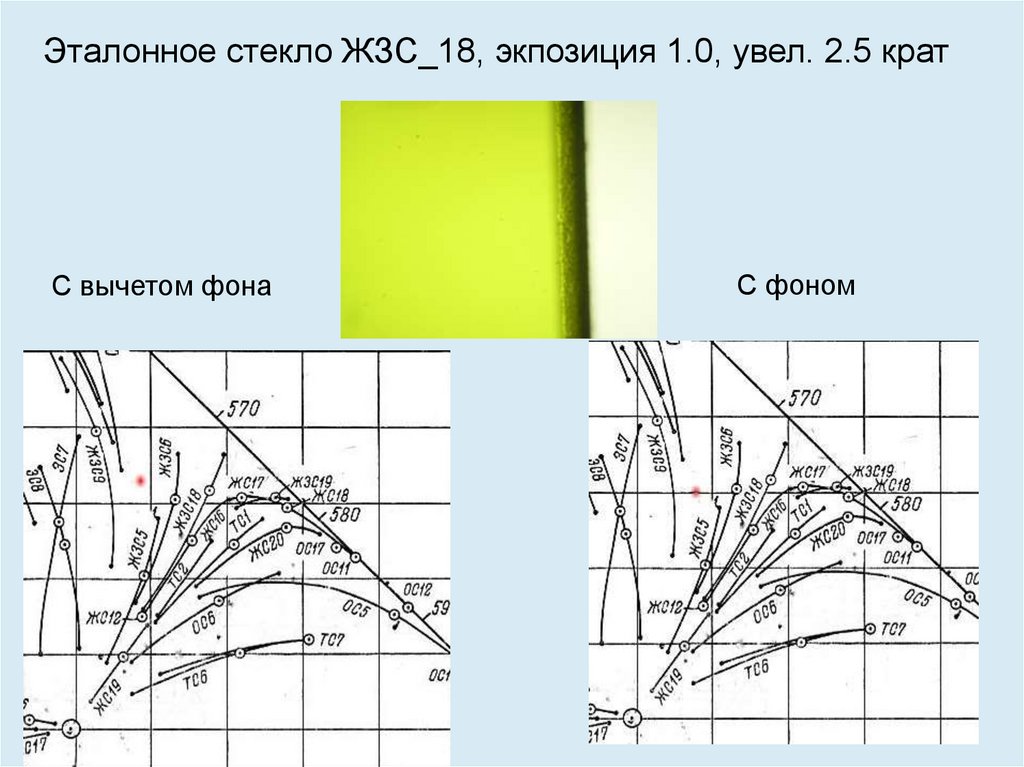 Эталонное стекло ЖЗС_18, экпозиция 1.0, увел. 2.5 кратС вычетом фона