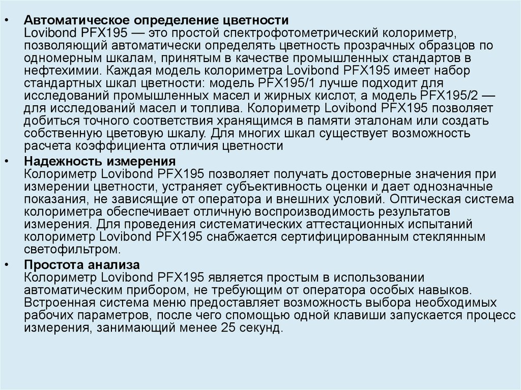 нефтехимии. Каждая модель колориметра Lovibond PFX195 имеет набор
