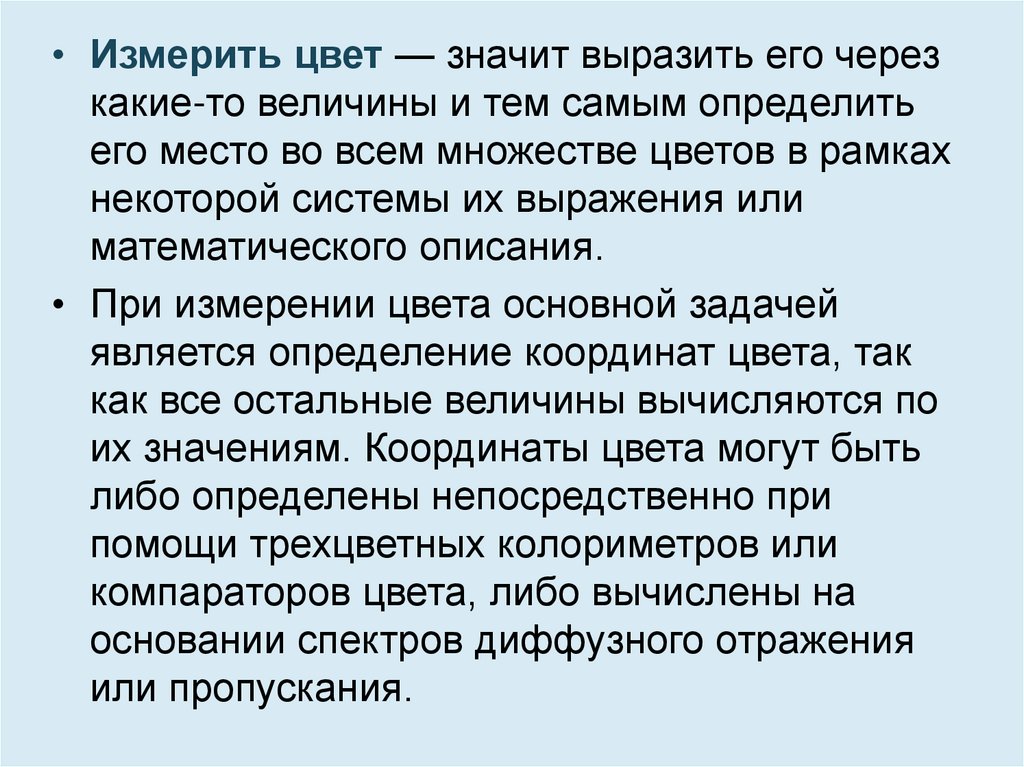 • Измерить цвет — значит выразить его черезкакие-то величины и тем самым определить