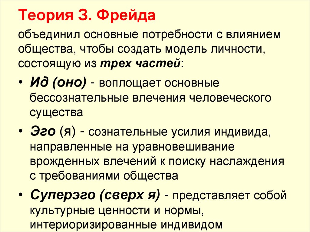 Теория З. Фрейдаобъединил основные потребности с влиянием