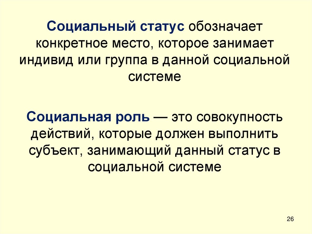 • Предписанный — это навязанный обществом внезависимости от усилий и заслуг личности. Он