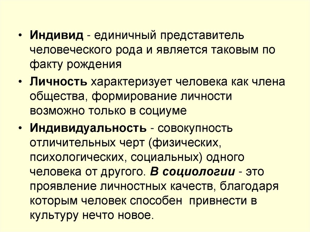 • Индивид - единичный представительчеловеческого рода и является таковым по