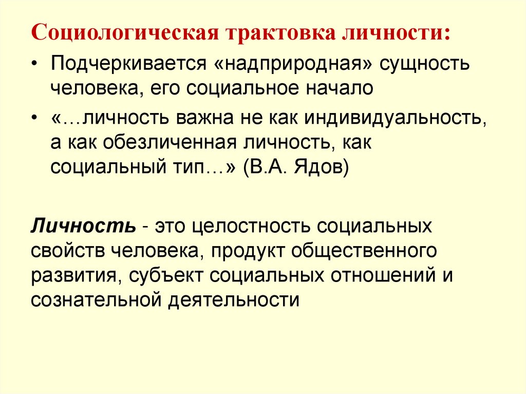 Социологическая трактовка личности:• Подчеркивается «надприродная» сущность