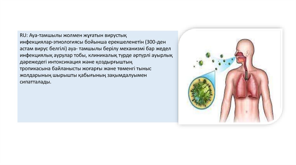 RU: Ауа-тамшылы жолмен жұғатын вирустықинфекциялар-этиологиясы бойынша ерекшеленетін (300-ден